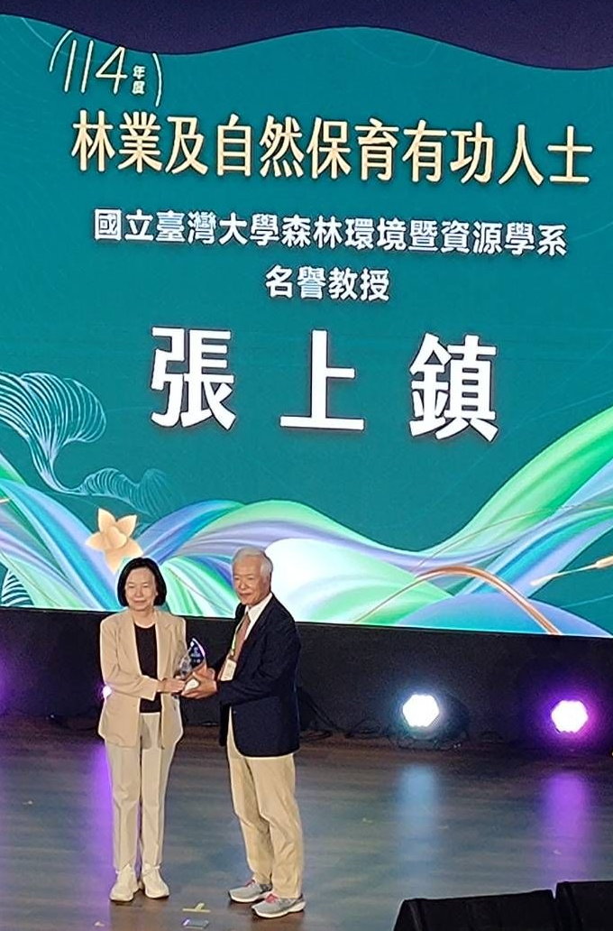 114年「林業及自然保育有功表揚大會」於2025年10月18日舉行, 這項被譽為「綠色奧斯卡」的盛會,旨在表彰對林業與自然保育領域貢獻卓著的傑出人士,彰顯其對我國自然資源的長期守護與永續發展的貢獻。本年表彰15位對林業與自然保育領域貢獻卓著的傑出人士,以及3組推動野生動物生命教育的模範團體,以對他們長年奉獻與努力的肯定,更希望藉由這些動人事蹟與感人故事,喚起社會大眾對自然保育的關懷與行動,共同守護臺灣珍貴的山林與生態環境。本系張名譽教授上鎮及鍾兼任教授國芳榮獲此殊榮。